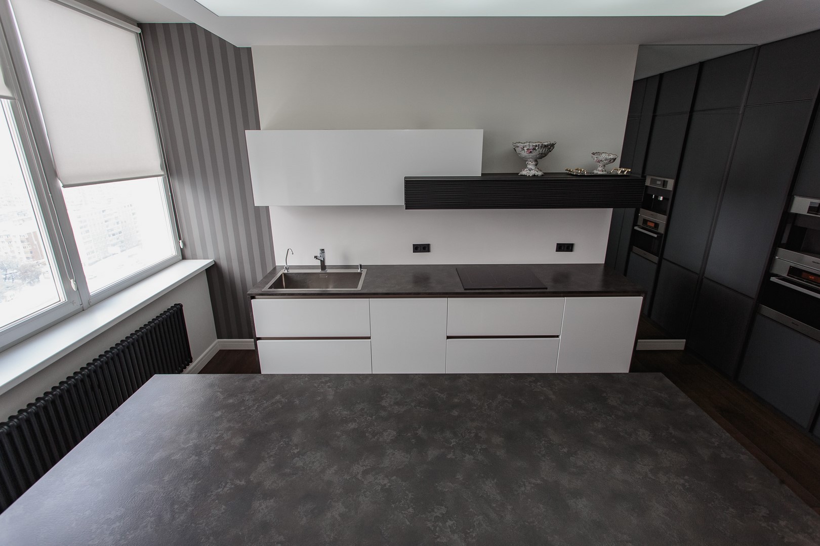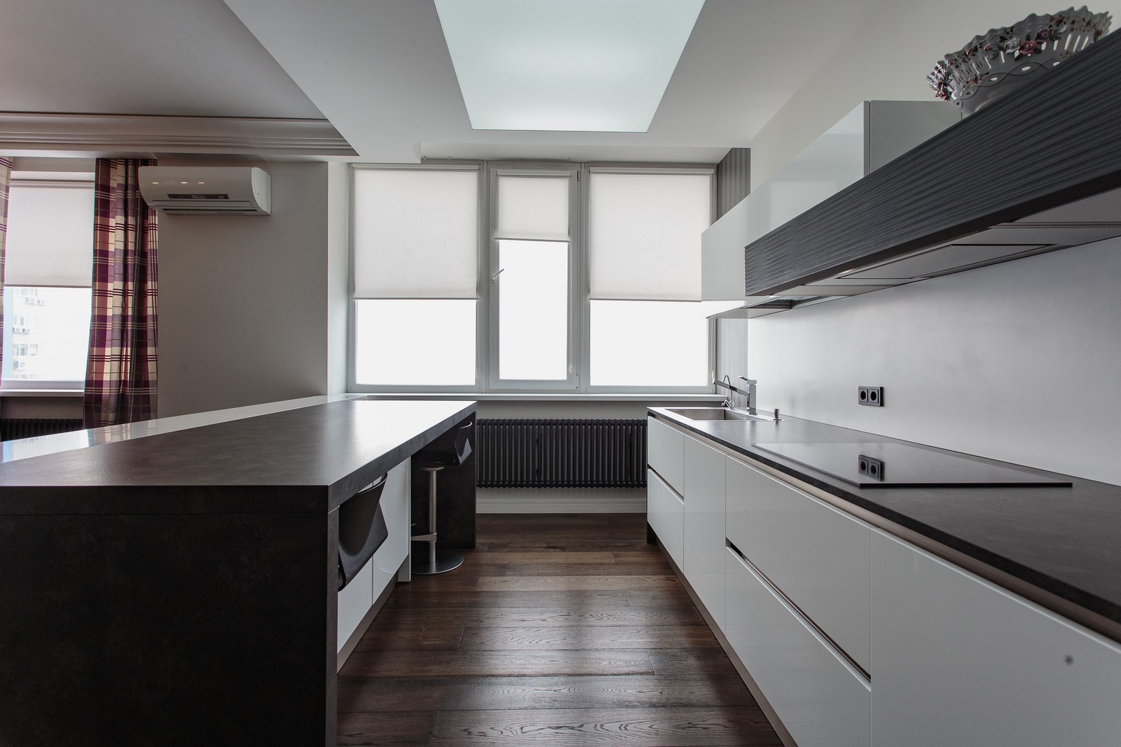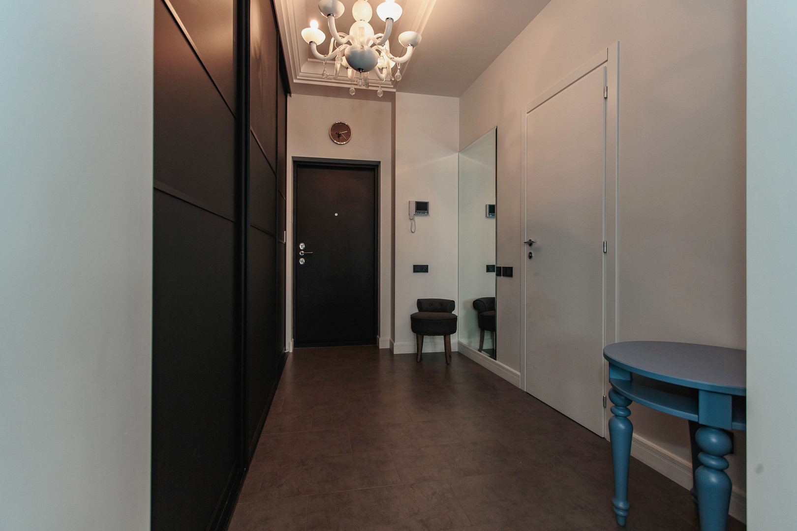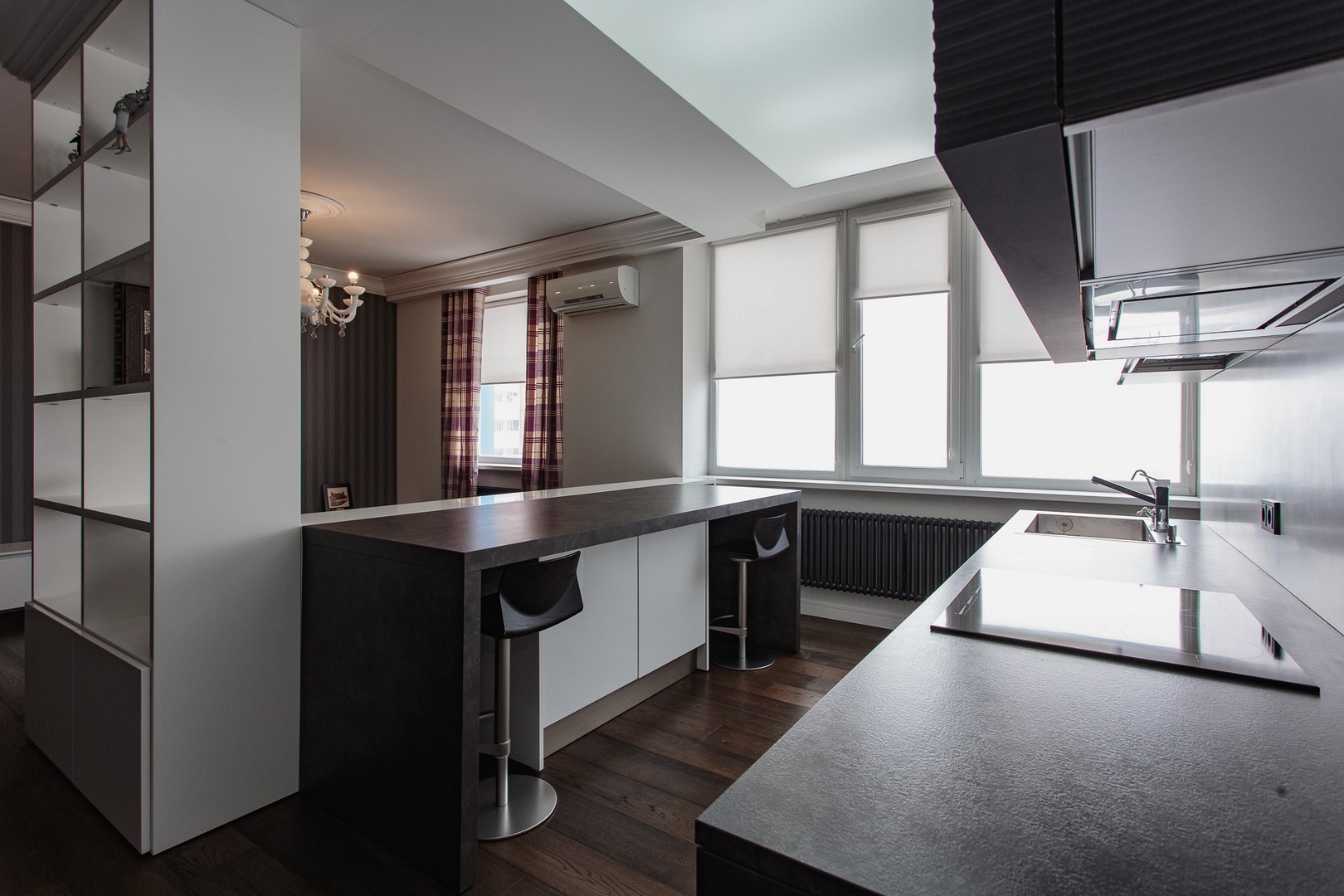 В квартире выполнен дизайнерский ремонт с привлечением исключительно дорогостоящих материалов, высота потолков 3,4м, квартира расположена на 20 этаже, что открывает панорамный вид на город.